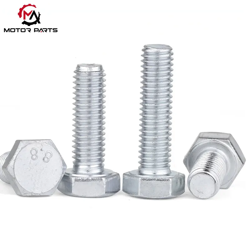 Šestihranný šroub M8-M14 z galvanizované uhlíkové oceli nabízí kompletní řadu specifikací vhodných pro motocyklové komponenty s různými úrovněmi zatížení: