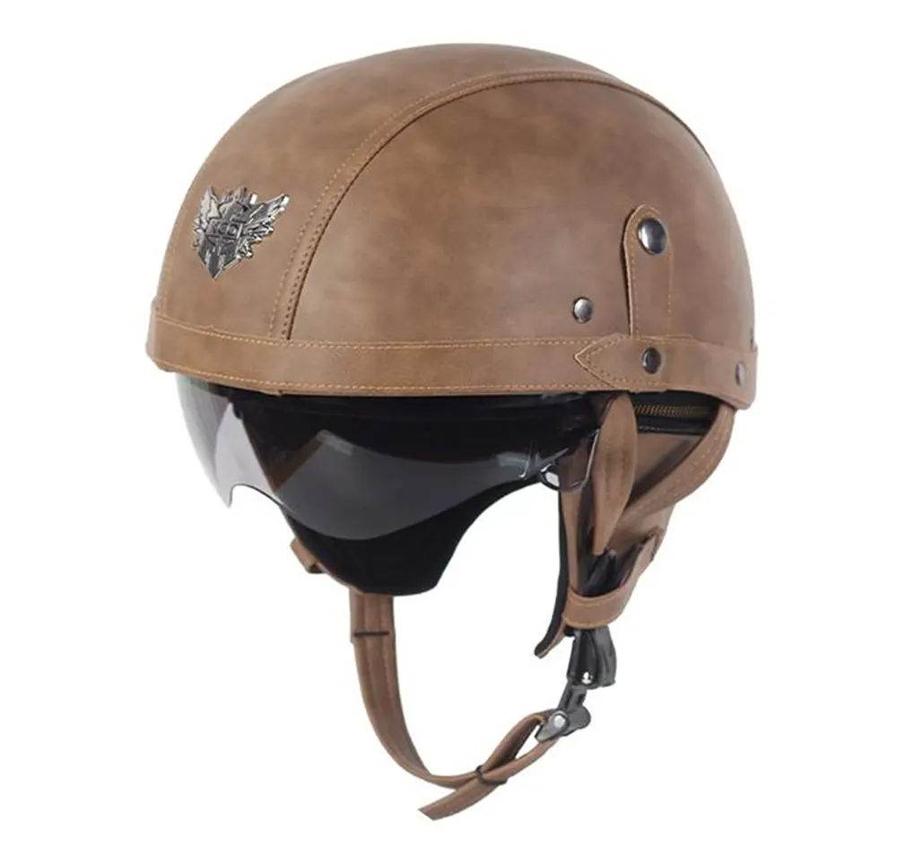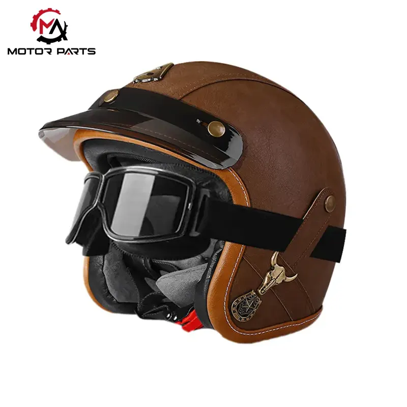 China Motorcycle Half Face Helmet Leather With Goggles je produkt s polopřilbou v retro stylu od výrobce Max Trading, kombinující bezpečnostní ochranu a stylový design, vhodný pro jezdce, kteří oceňují jak individualitu, tak praktičnost.