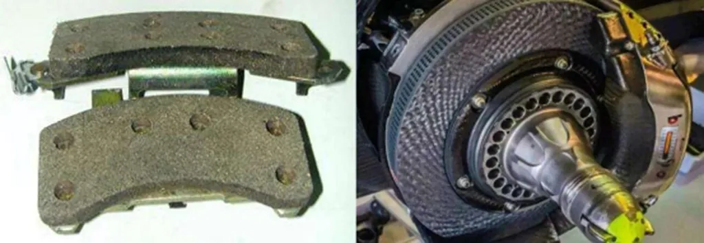 Azbestové brzdové destičky a vysoce výkonný brzdový systém z uhlíkových vláken