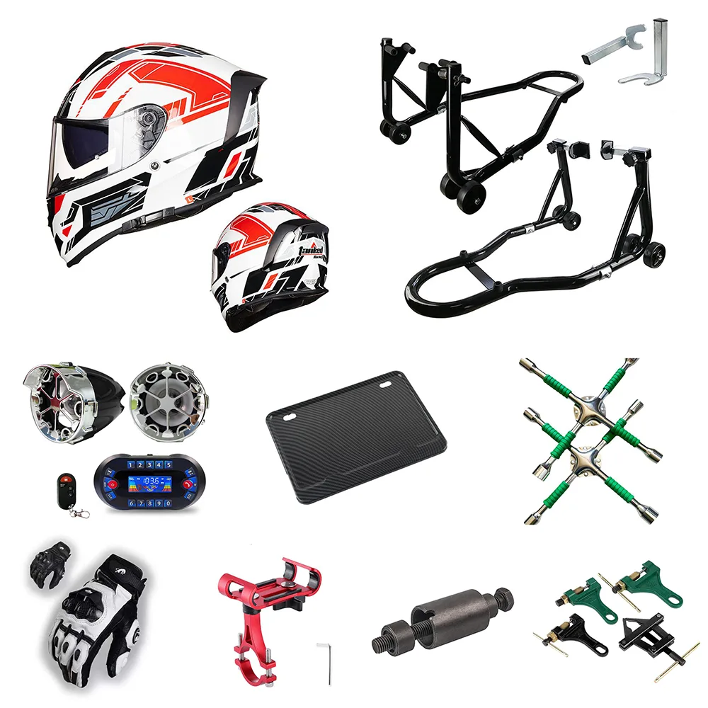 Toto je kostra a odpružení vašeho motocyklu. Začíná to s rámem a blatníkem. Přední vidlice a systém odpružení (včetně komponent absorbéru nárazů) ruší hrboly. Vaše spojení na silnici je přes kolo, náboj, okraj kol a pneumatika. Funkční a ochranné příslušenství, např. Zámek proti krádeži, ochrana nárazníku/nárazů, zpětné zrcátko, úložný box, rám strážce (stráže motoru/nárazové pruhy), stojan na kicks a čelní sklo, dokonce i dekorativní příslušenství, které se připojují k podvozku.